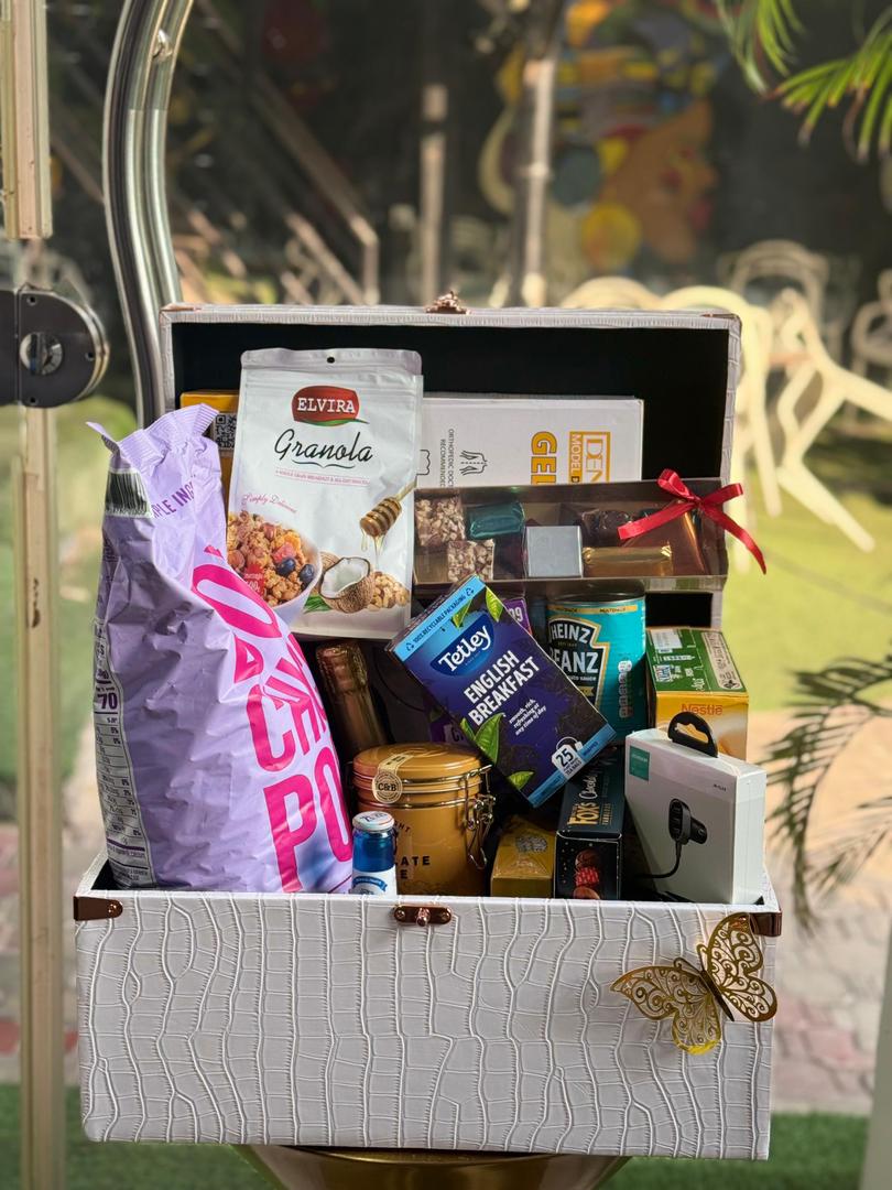 The ultimate start to a luxurious day. Our Elite Morning Signature Trunk is a carefully curated selection of breakfast essentials and gourmet indulgences, presented in a stunning, textured white keepsakes chest with gold-tone hardware. From premium English Breakfast tea to artisanal granola, this hamper is designed for those who appreciate the finer things in life.