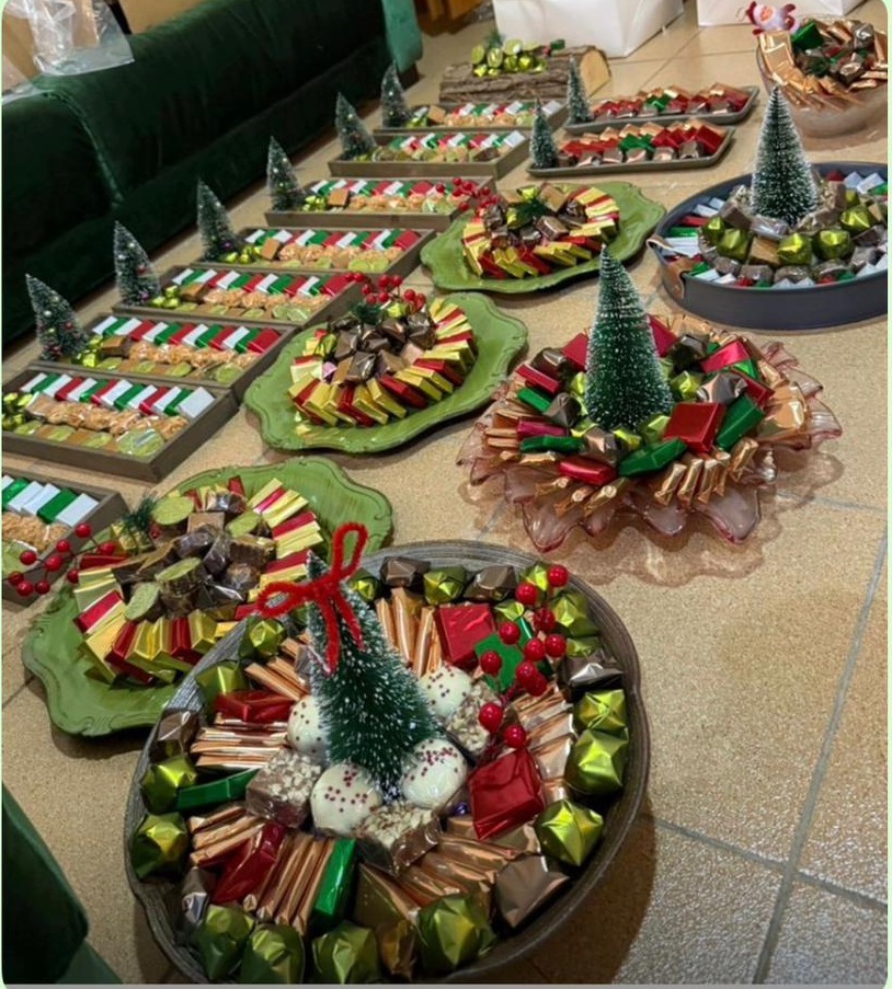 Celebrate the Magic of the Season with an Unforgettable Gourmet Experience. Elevate your holiday table with our stunning Handcrafted Christmas Chocolate Carousel. Designed as both a decadent treat and a festive centerpiece, this arrangement is meticulously assembled with a premium selection of artisanal chocolates wrapped in elegant copper and jewel-toned foils. Finished with a signature emerald green ribbon and a charming frosted miniature tree, it is the ultimate expression of holiday cheer.